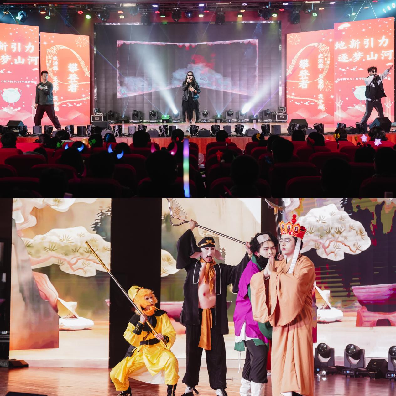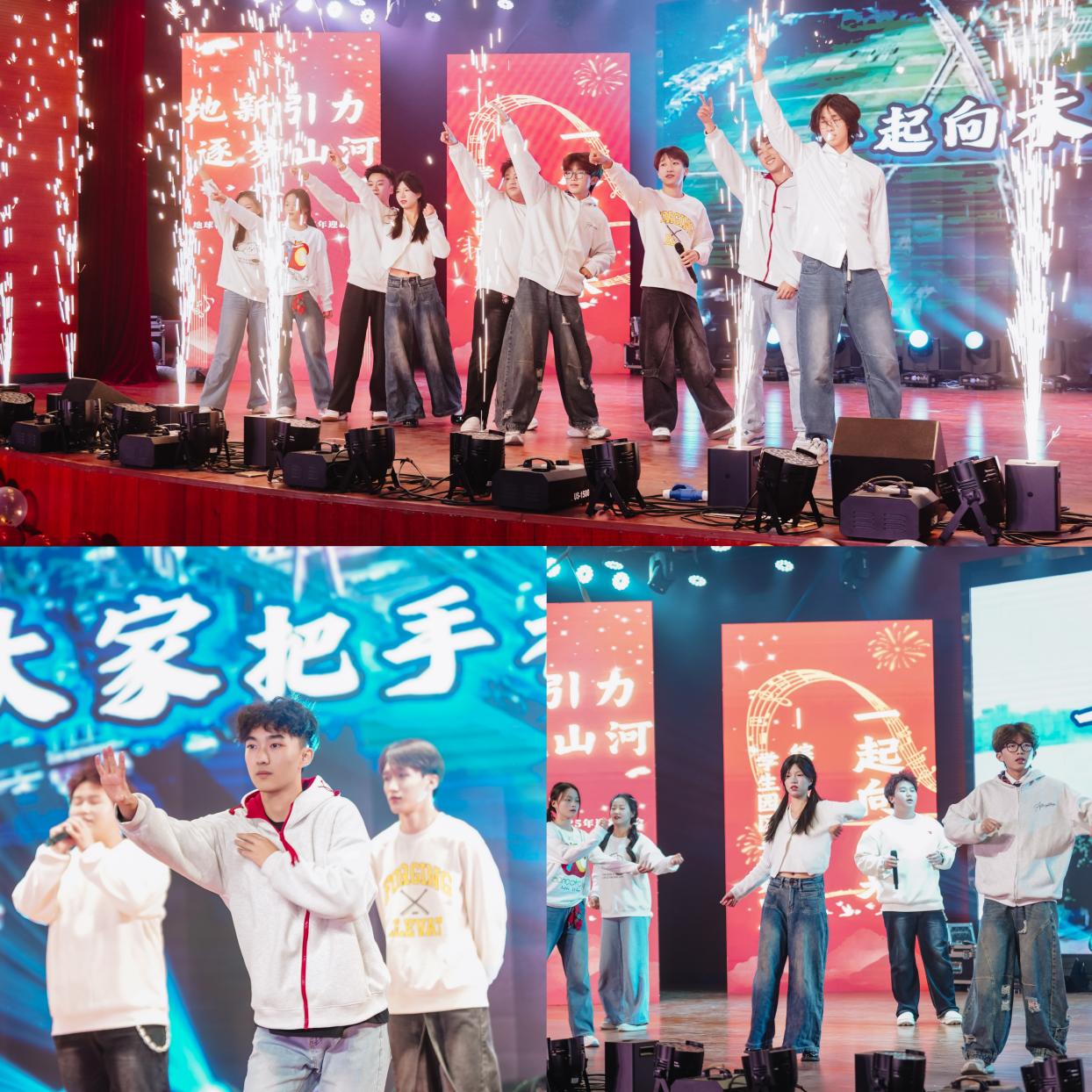 随后,陈贻铮等同学深情演绎歌曲《跨越山海,与你重逢》,悠扬歌声中传递出跨越千山万水、终在交大相聚的温暖与珍重。测绘一班带来的舞蹈《元气加速度》,以动感十足的编排、整齐划一的动作,展现出青年学子活力四射、奋发向前的精神面貌。