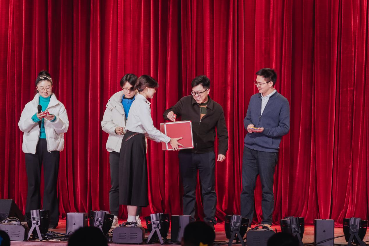 驰骋文体赛场,闪耀青春风采。在第二篇章的尾声,曾洁副书记为2025年“十佳文体委员”颁奖,表达对文体工作者的认可和赞誉;学院四位科室主任分别抽取二等奖的幸运观众,推动现场气氛走向火热。