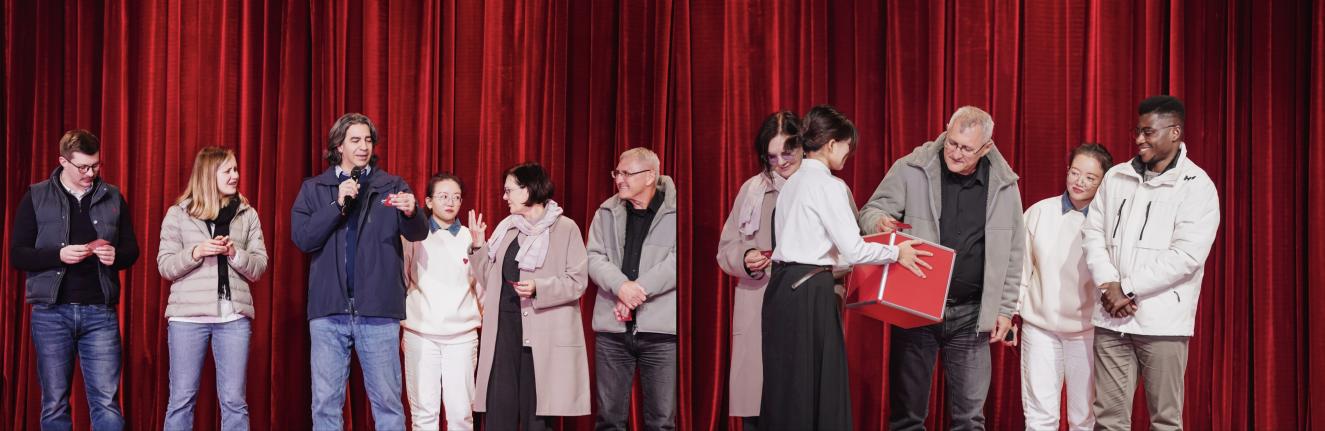 在第三篇章结束之际,张玉春副院长为新生美育系列获奖个人与集体颁奖;郑简平书记抽取最激动人心的一等奖幸运观众。
