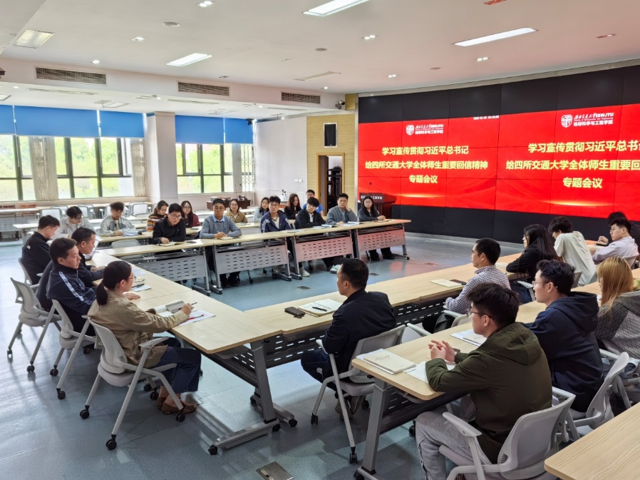 4月8日,学院党委第一时间召开专题学习会,传达重要回信精神并研究部署落实举措。学院党委委员、领导班子成员、各党支部书记及委员代表参会交流。会议指出,习近平总书记重要回信立意高远、思想深邃、内涵丰富、催人奋进,充分体现了以习近平同志为核心的党中央对高等教育事业的高度重视和对交通大学师生的深切关怀,为学院事业发展指明了前进方向、提供了根本遵循。参会人员结合学科建设、人才培养、科研攻关与社会服务实际畅谈学习体会,纷纷表示要把学习宣传贯彻重要回信精神与落实教育强国建设要求紧密结合,聚焦川藏铁路等国家重大工程,深化产学研融合,强化科技创新与人才自主培养,以高质量党建引领学院事业高质量发展。会议由学院党委书记郑简平主持。