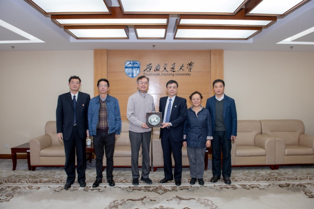 会后,范维澄院士携夫人一行,来到西南交通大学校史馆,在校史馆讲解员的带领下,范维澄院士及其夫人一同感受追忆交大的变革历程、感受父辈之成就。在“优秀师资”的展示墙上,范维澄院士与其父亲范治纶教授的照片合影留念。至此,范维澄院士一行来校交流圆满结束。