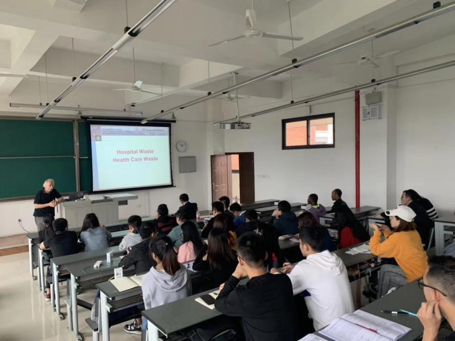 学生举行了一系列的学术讲座及学术交流。其中,Sabo教授讲授了臭气净化领域的理论和技术,包括“欧洲和德国的污水处理厂异味排放处理现状”、“有机废气污染治理”等;Fischer教授以“欧洲和德国的医疗废弃物处理现状”和“欧洲和德国的MSW管理”为主题,介绍了德国在固废处理特别是医疗废物方面所付出的努力和取得的成果。此外,Sabo教授和Fischer教授还到环境馆外实验室参观,并与师生代表进行深入探讨,以期在人才培养、科学研究等方面展开更多的合作。