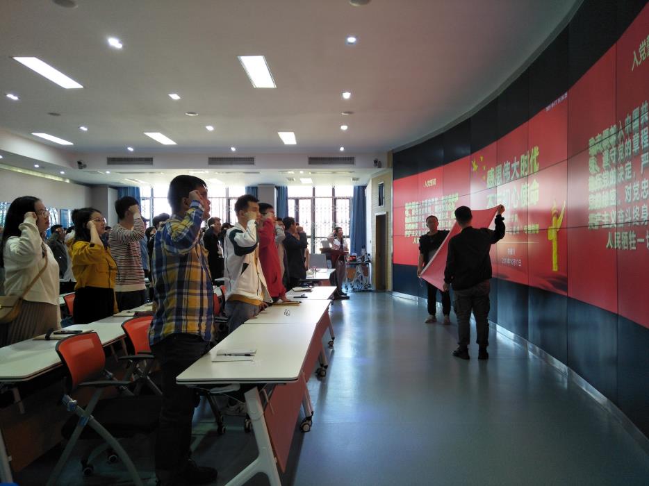 全体起立,关秦川带领党员同学,重温入党誓词。