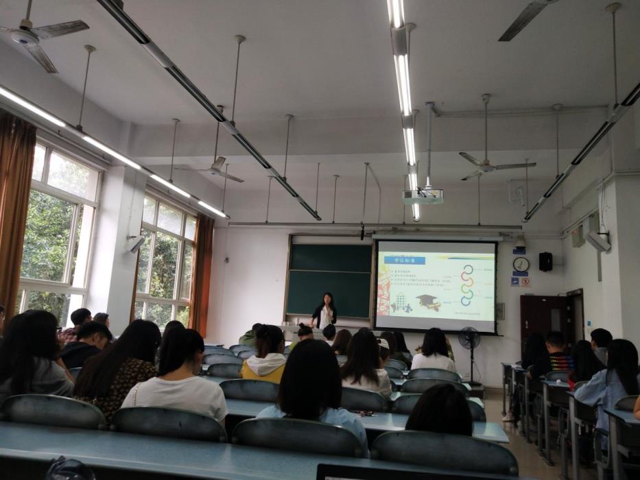 张涵结合自己亲身经历介绍了校内实验平台,即环境污染与工程环境控制四川省高校重点实验室和四川省环境保护区域环境空气质量综合检测重点实验室。之后,张涵简述了硕士学位标准和硕士学位论文全过程管理。
