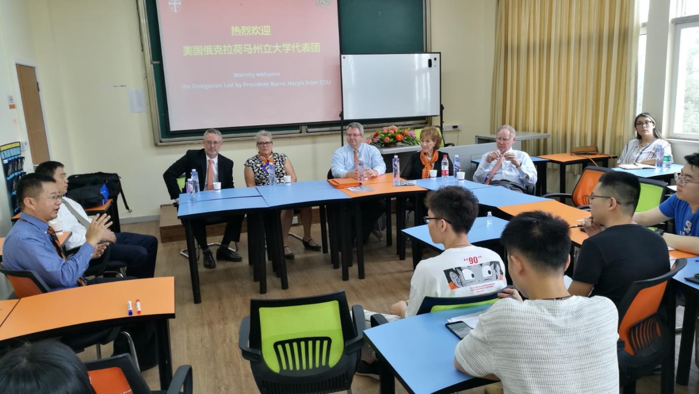此后,俄克拉荷马州立大学代表团分别在1511及1513教室与部分学生及家长代表就签证、交通、医疗、安全和继续深造等具体问题进行了深入交流,以使学生及家长详细了解留学前应做的各项准备及其时间节点。