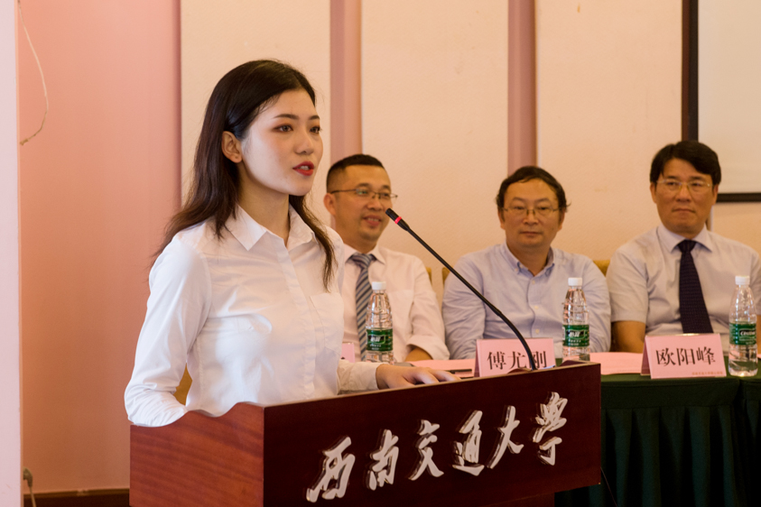 紧接着,老生代表董雯雯向新生们表示祝贺并介绍了西南交通大学良好的自然环境和悠久的办学历史,表达了对安全工程(中外合作办学)项目的认可以及对老师的肯定。她还建议同学们管理好自己的时间,积极参加课外活动,努力提升自己的能力。