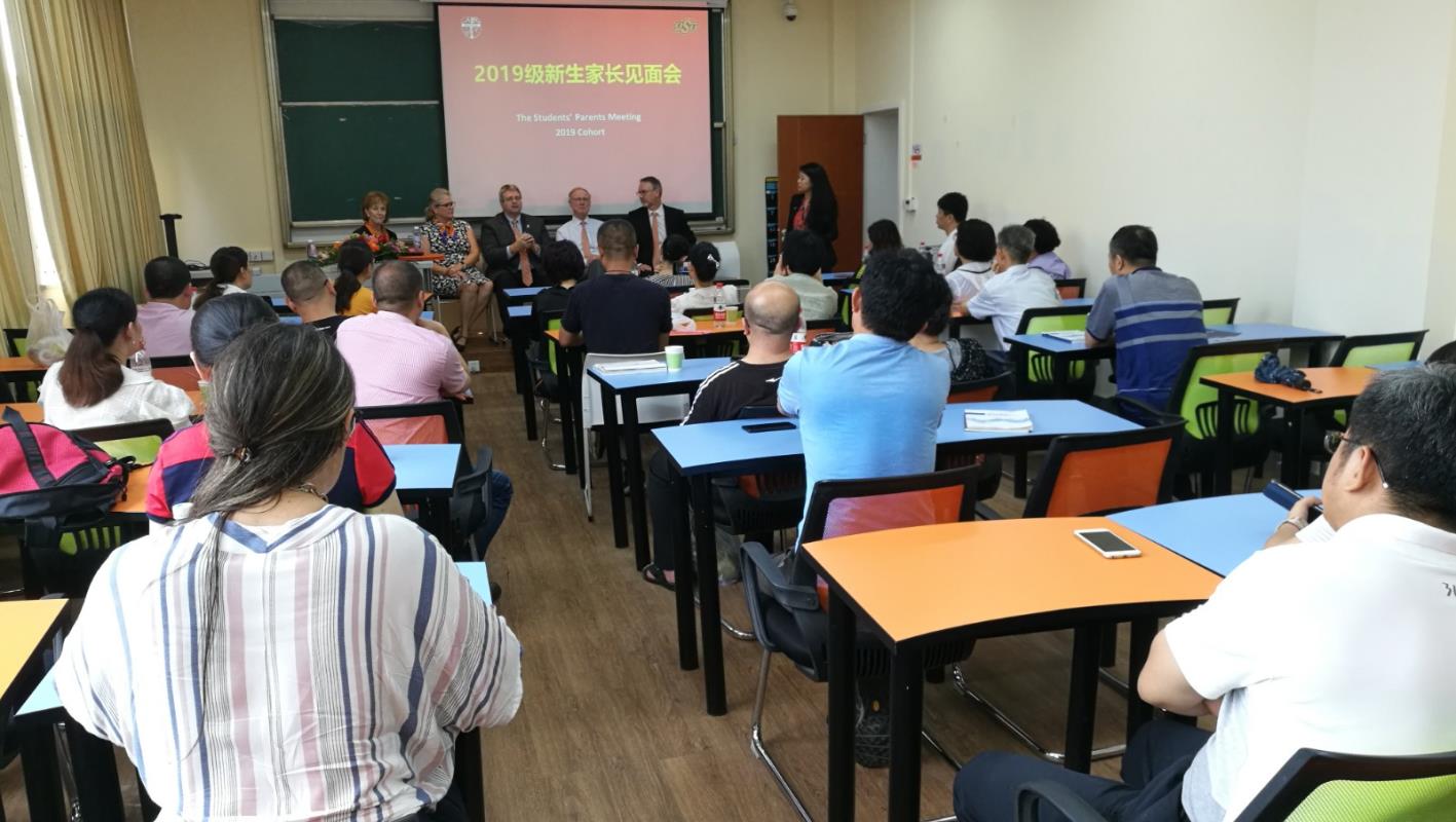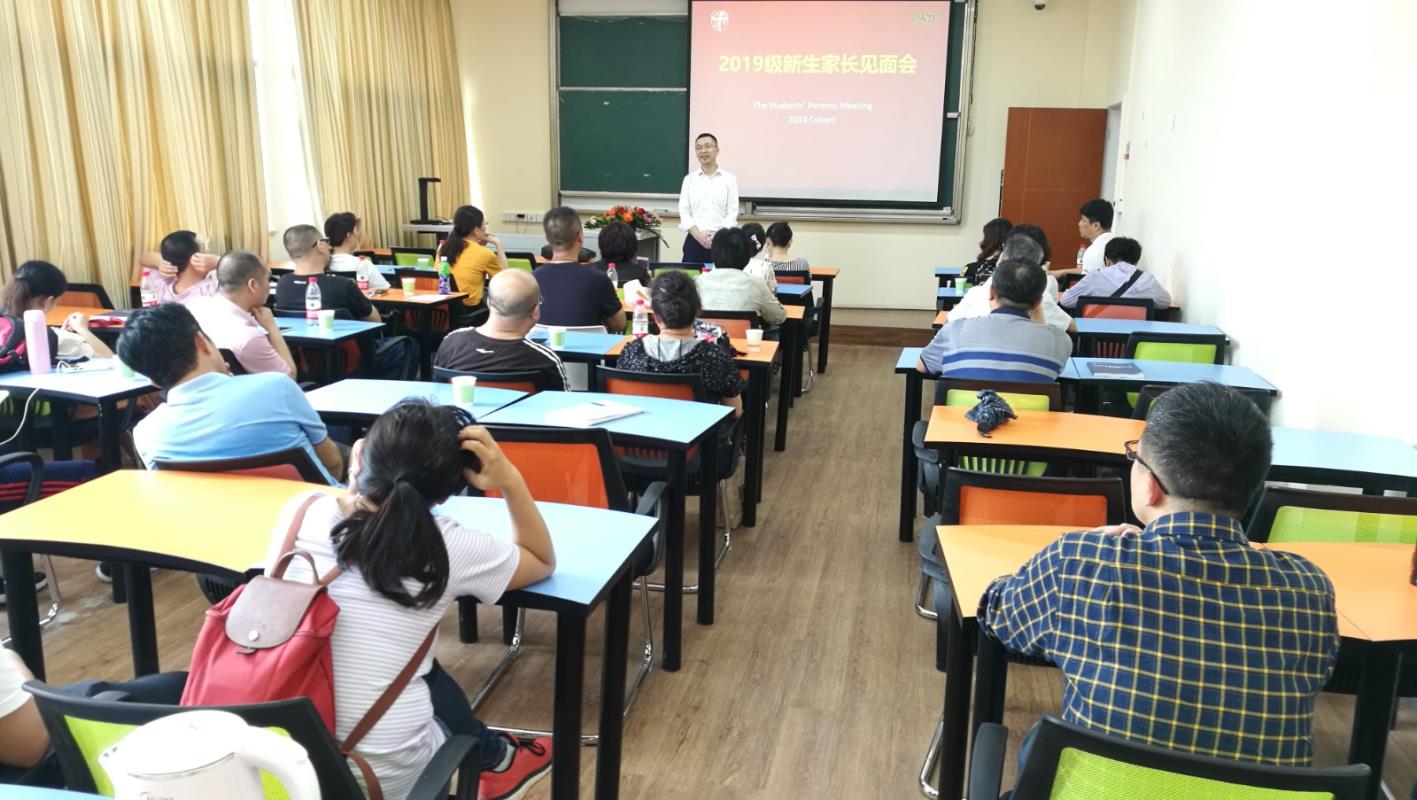 与此同时,傅尤刚副书记正在1511教室主持2019级新生家长见面会,他从学生规划、日常管理和安全教育3个方面与家长们进行了交流。随后,许军华副院长向家长们详细介绍了项目的开展情况,扫除了他们的疑虑。