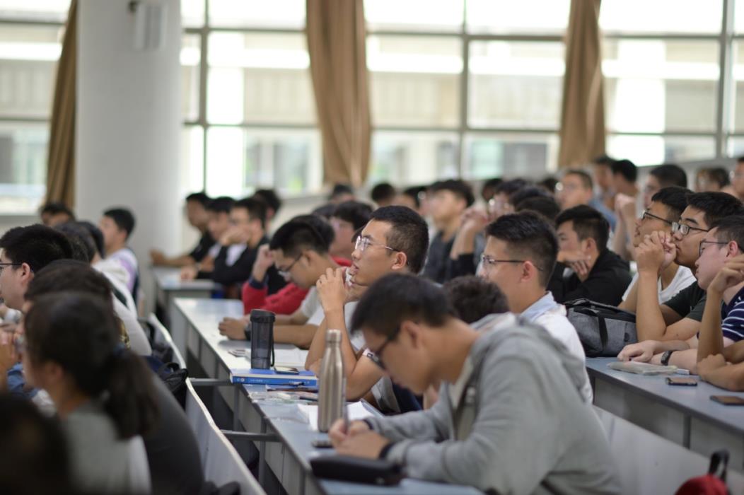 测绘遥感信息系教授朱庆讲解,参与人员为测绘专业2019级全体新生。本科2019级辅导员李婧主持本次活动。