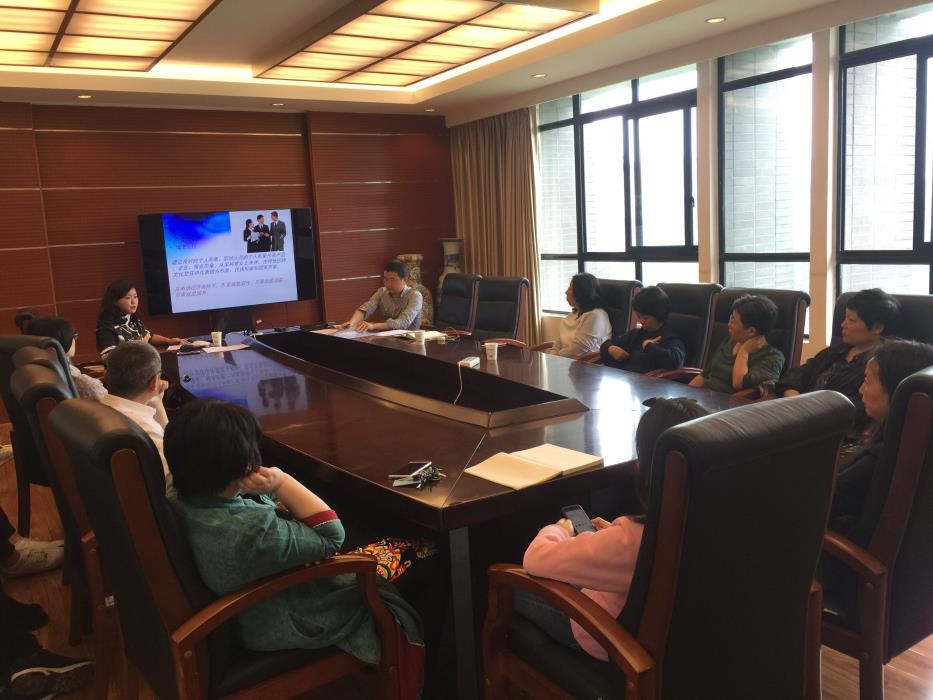机关工作人员及学生做国际示范学院建设中的礼仪讲座,讲座由张溪老师主讲。