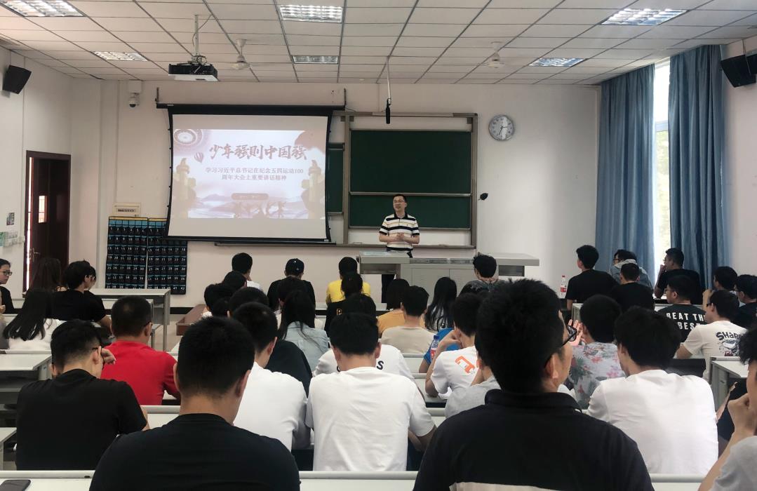 党委副书记傅尤刚,辅导员杨都强、孙惠敏、翟琦一行赴赴峨眉校区与地学学生共同学习习近平总书记在纪念五四运动100周年的讲话精神。本次会议于6107召开,由学院党委副书记傅尤刚主讲。