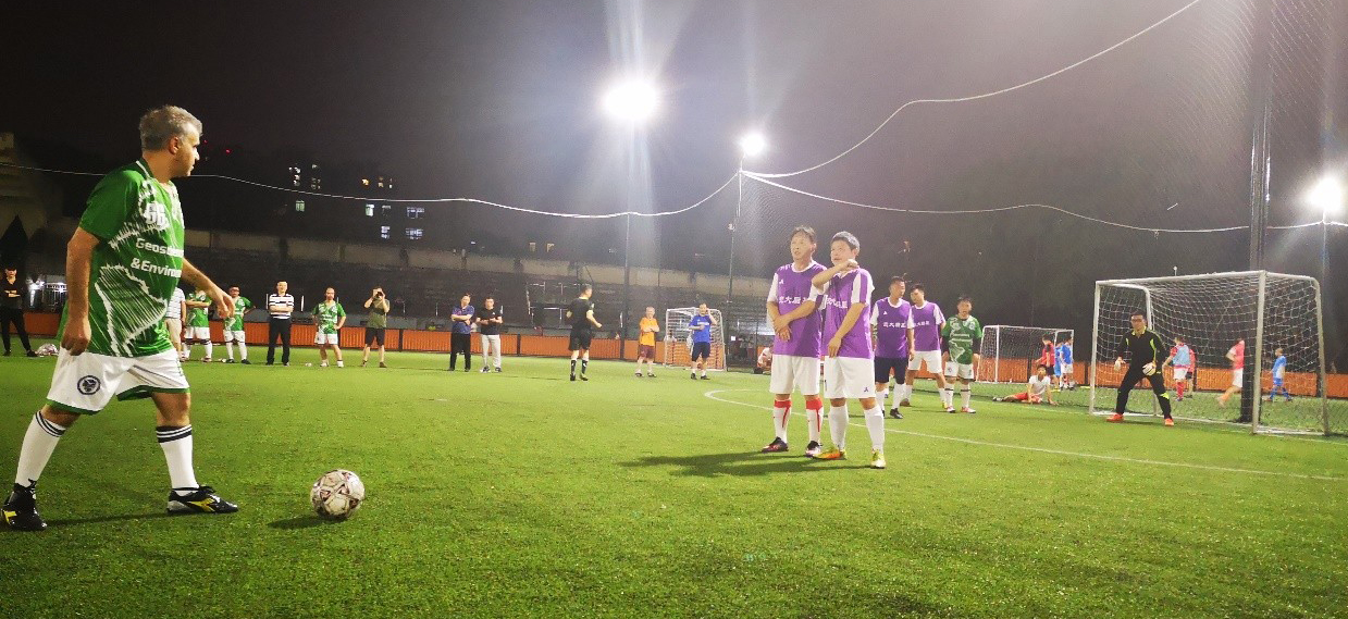 在此前的比赛中,两队间互有胜负。赛前,地学教工足球队提早来到球场进行热身和战术安排。分析了对方球队在前几场比赛中的表现,针对对方球队中表现突出的选手作出相应的战术安排。在比赛过程中,双方队员大胆拼抢,身着绿色队服的地学老师们紧密配合,多次通过精彩的传球和协作给对方带来威胁。而后勤老师们也展现了进入决赛的高超球技,不断寻找地学足球队的漏洞发起攻击。双方球员们的精彩表现和精湛的球技引来观众们的阵阵呐喊声和欢呼声。经过激烈的对抗,后勤代表队最终胜出。地学老师们在球场上敢于拼搏,永不言弃的身影铭刻在在场每一位观众心中。