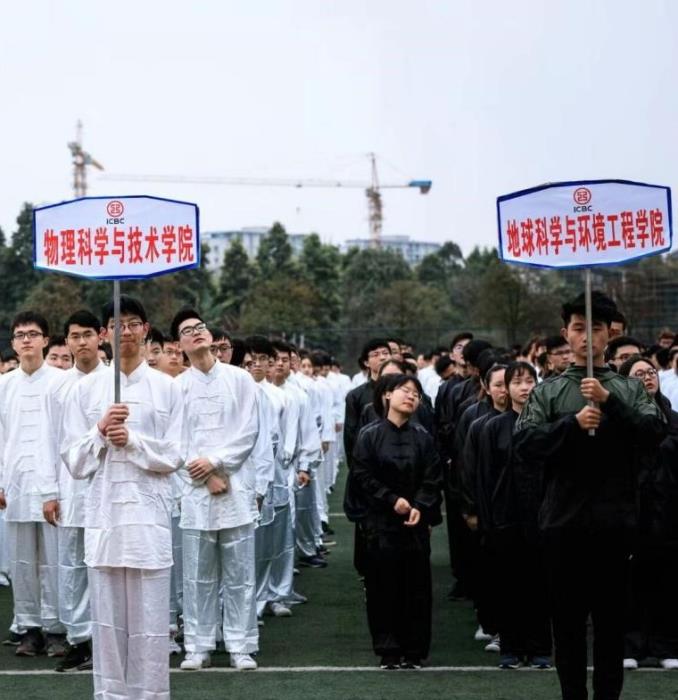 在各有特色的学院服装中仍然独树一帜。领导为大赛致辞后,所有同学拉开阵型,进行了汇操表演。共一千七百多名同学同时打起太极,场面十分的壮观。