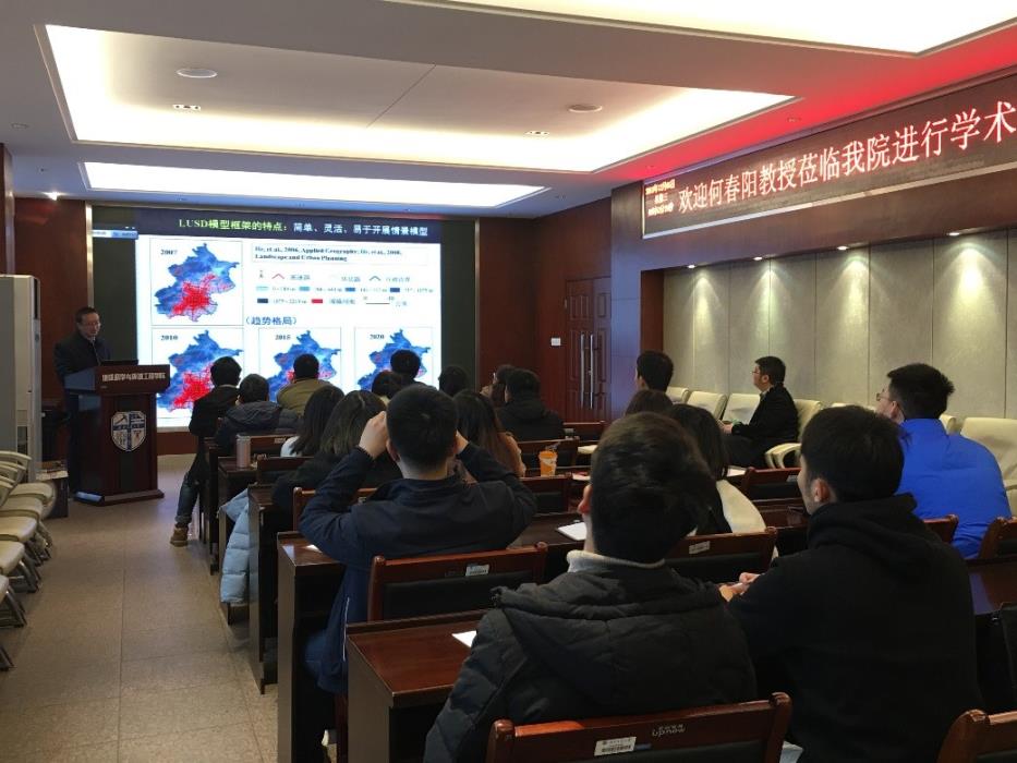赵锐教授邀请,进行了城市景观生态学过程与可持续性学术讲座。何春阳教授现为北京师范大学地表过程与资源生态国家重点实验室副主任,北京师范大学人与环境系统可持续研究中心执行副主任,中国自然资源学会资源持续利用与减灾专业委员会主任。主要从事土地利用/覆盖变化、景观可持续科学和城市可持续科学研究。