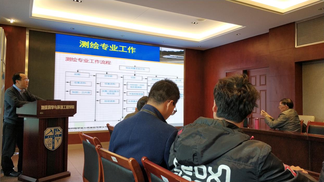 研究生同学开展关于测绘技术的发展与铁路应用以及面试技巧知识的讲座,副院长刘成龙教授主持本次讲座。