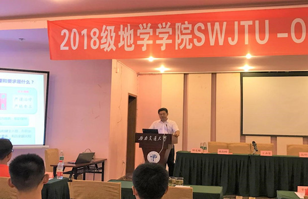 刘国祥为新生讲授新生入学第一课。他首先为同学们介绍了西南交通大学的基本情况,包括学校概况、专业特色、交大校训传统和精神等方面。接着,刘国祥介绍了地学漫蛙漫画概况