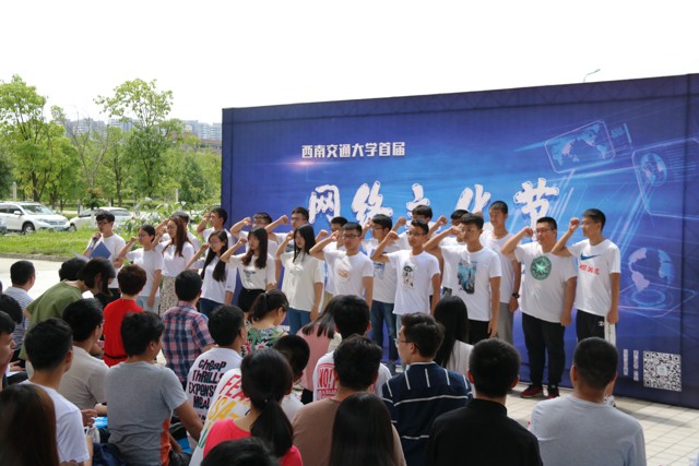 其后,西南交大校园网络小达人上台庄严宣誓,地新传媒主席宋梓荣领誓,“我宣誓;坚持依法上网、用网,不造谣、传谣、信谣,规范个人言行,恪守网络道德,纠正不良风气,构建清朗网络。引导网络舆论,传播正能量,加强文明意识,引领好风尚。自愿为网络文明建设做出自己的贡献。”