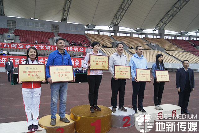 之后,郭立昌宣布“最佳组织奖”获奖单位并与高平一起为“最佳组织奖”获奖单位颁奖。交通运输与物流学院、电气工程学院及峨眉校区等众多团体都获得了运动会“最佳组织奖”。