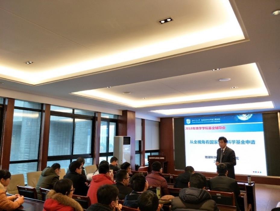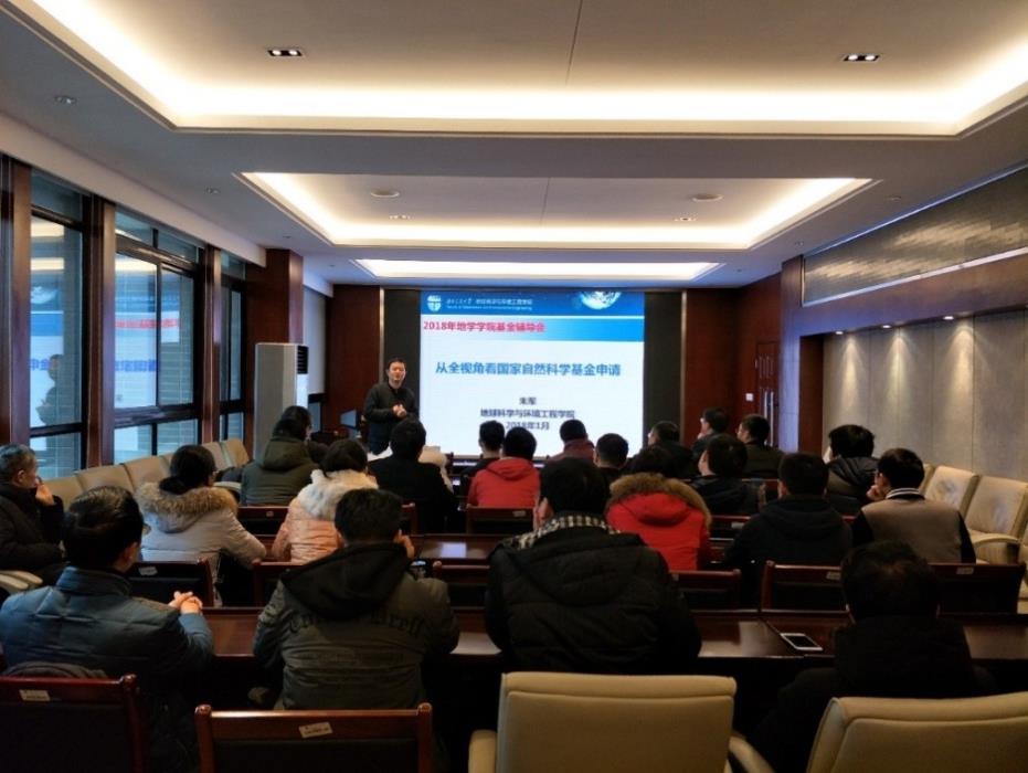 1月5日上午,地球科学与环境工程学院于X4520召开2018年度国家自然科学基金项目申报动员暨辅导会。参加会议的有院党委书记王齐荣教授、遥感信息工程系朱军教授,以及学院各系教师代表。会议由副院长胡卸文教授主持。