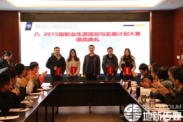 傅尤刚为2015级职业生涯规划与发展计划大赛获奖者颁奖。