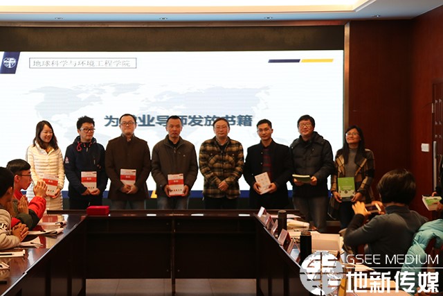 欧阳峰为学业导师代表发放了职业规划指导书籍。