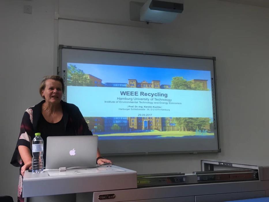 学生举行了一系列有关“垃圾回收处理”学术讲座,交流主题依次为“欧洲和德国的垃圾组成和分类”、“欧洲和德国的有机垃圾处理现状”、“欧洲和德国的垃圾焚烧现状”、“欧洲和德国的塑料回收”以及“欧洲和德国的电子电器垃圾回收”。在交流中,Kuchta教授详细地讲解了欧洲及德国垃圾焚烧、垃圾填埋的现状,以及塑料废物回收和电子电器废物回收的具体工艺流程,也向同学们展示了多年来德国在垃圾回收处理方面所付出的努力和取得的成果。每次讲座结束后,由研究生代表分别介绍中国相应的垃圾回收处理现状,并与欧洲、德国进行对比,与教授进行深入探讨。在访问期间,Kuchta教授还参观了洛带垃圾填埋场、青白江祥福垃圾焚烧厂及四川长虹格润再生资源有限公司,实地考察了成都垃圾回收处理的情况,并与学院、相关企业达成了开展相关科研合作的初步协议。