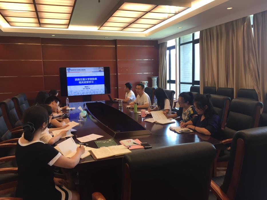 傅尤刚副书记就鹿金龙老师讲解的《西南交通大学家庭经济困难学生学费缓缴实施办法(试行)》提到:“困难学生学费缓缴政策是切切实实解决困难学生的上学问题,是学生工作顺利开展的保障,是关系到学生管理安全稳定的重要政策,也切实关系到困难学生切实利益,希望大家认真学习”。