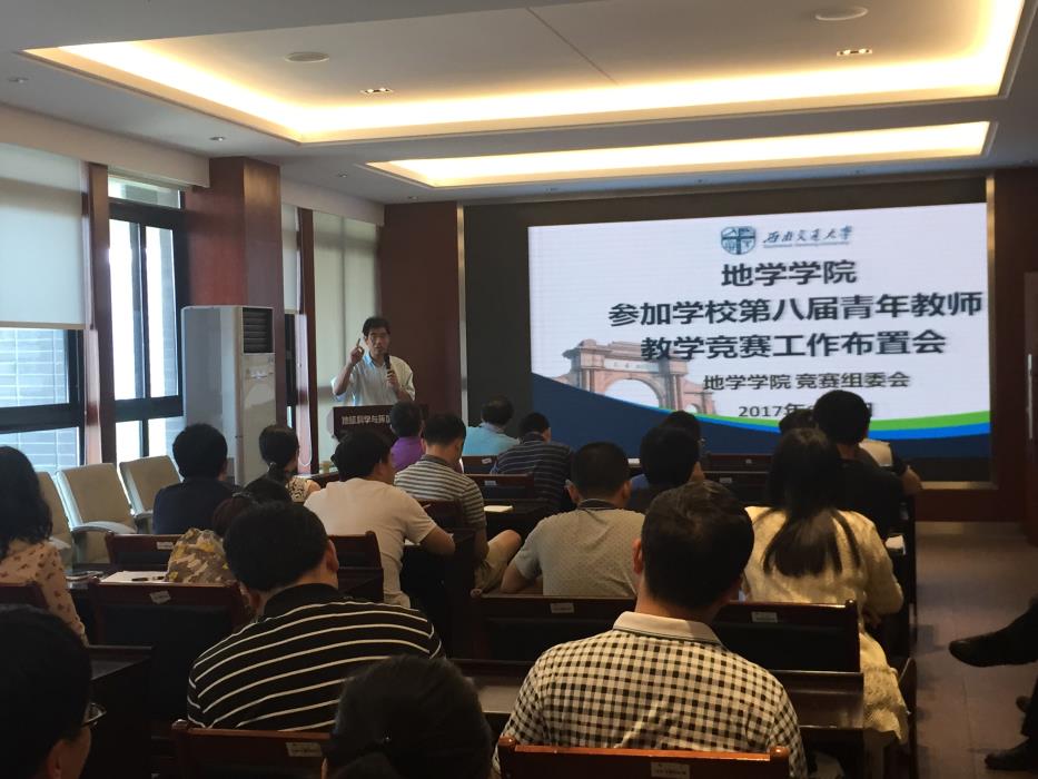 参加学校第八届青年教师教学竞赛工作布置会》,学院党委王齐荣书记做了以下四方面的参赛动员报告:1、统一思想 高度重视。他强调学院青年教师要统一思想,高度重视,指出教学能力与水平的提升是青年教师成长的重要目标,讲课比赛是实现这一目标的有效手段;2、积极报名 党员带头。他要求青年教师积极报名,特别是青年教师党员要发挥先锋模范作用,带头报名,系教工党支部要协助系里做好动员与组织工作;3、充分准备 力争优胜。他希望青年教师为比赛做好充分准备,在比赛中充分展示自身的特点与优势,争取获得优异成绩;4、认真总结 争取实效。他要求赛后青年教师要认真总结经验反思不足,从而达到以赛促升的实际效果。主管本科教学欧阳峰副院长,向参赛的青年教师进一步详细解读了第八届青年教师教学竞赛规则。会后还召开了系主任专项工作会议,听取和征求系主任对教学竞赛相关工作的建议。