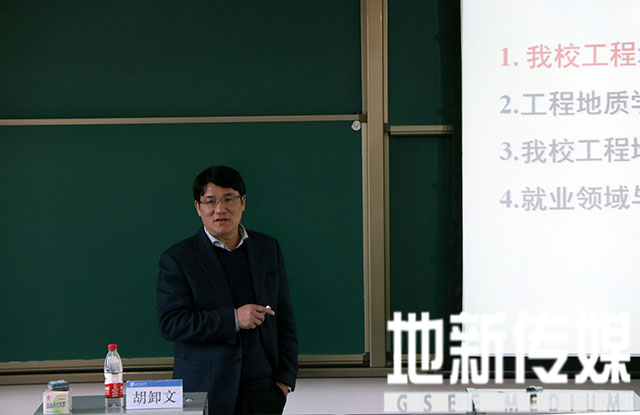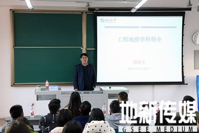副院长胡卸文教授主讲,以工程地质学科简介为主题。讲座由韩国漫画