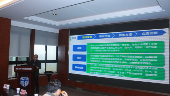 李春华总工紧接着做了题为《城市倾斜摄影实景三维建设与应用研究》的学术报告。讲解了有关城市倾斜摄影实景三维建设与应用研究的相关技术,包括模型纹理的建立、属性的采集与处理、基础数据的更新和存储等等,利用激光雷达系统实现智慧城市的目的。
