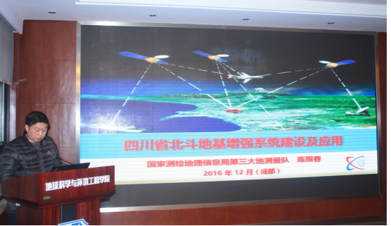 四川省第一测绘工程院陈现春总工做了题为《四川省北斗地基增强系统建设及应用》的学术报告会。陈现春总工指出,该系统是与西南交通大学卫星导航定位研究中心黄丁发教授科研团队的科研成果紧密结合的,作为全国最大北斗地基增强系统,已经在四川建成并投入使用,该系统包括100座基准站组成的基准站网络、数据处理系统、运营服务平台、数据播发系统和用户终端,解决了我省复杂地形条件下的基准站新建、改造和整合等技术难题,填补了我省北斗高精度位置服务的空白。该系统兼容中国北斗、美国GPS、俄罗斯GLONASS三大卫星系统,是目前国内站数最多、覆盖范围最广、技术水平领先的省级北斗基准站网络,各项指标均达到或优于当前GPS地基增强系统水平。