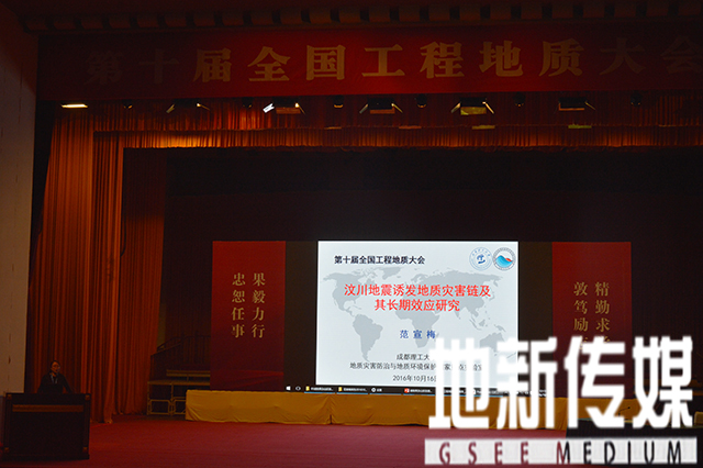 第十届全国工程地质大会学术报告会于2016年10月16日开始在四川省成都市金牛宾馆召开。全国各地及国际特邀工程地质专家将欢聚一堂,围绕国家提出的“一带一路”建设涉及的交通,能源,海洋,城市等重大工程地质问题,工程地质新理论呢,新技术以及工程地质教育及科学发展进行研讨,共同建设强盛和美好的国家献计献策。
