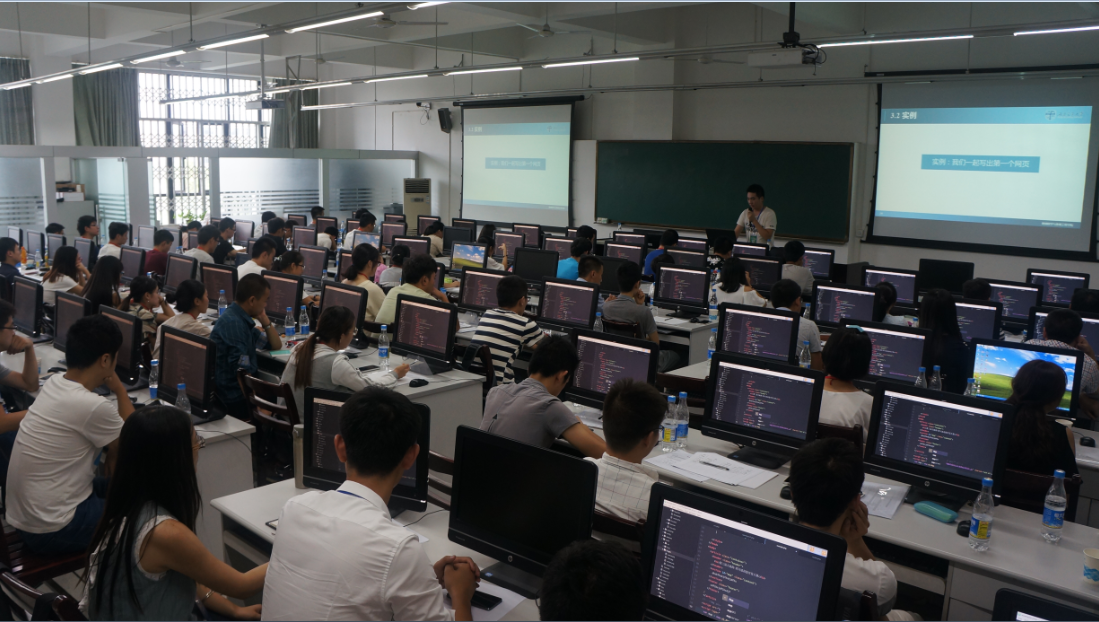 担任本次培训的主讲老师分别是来自四川省第一测绘研究院的高微硕士、四川省测绘地理信息局基础地理信息中心曾李阳硕士,另外两位主讲老师是西南交通大学地球科学与环境工程学院在读研究生范庆亚和许慧敏同学。他们都是在前两届“大赛”中成长起来的优秀选手。培训内容涵盖WebGIS常用的应用开发技术、“天地图•四川”Web API、“天地图•四川”移动API开发技术等方面。凭借他们对开发技术的扎实基础和实践经验,课程采用讲练结合的方式,使培训学员易于抓住应用开发中的重点难点。讲课之余,各位老师以自己优秀作品创作者的身份与学员分享了参加大赛的心得体会。