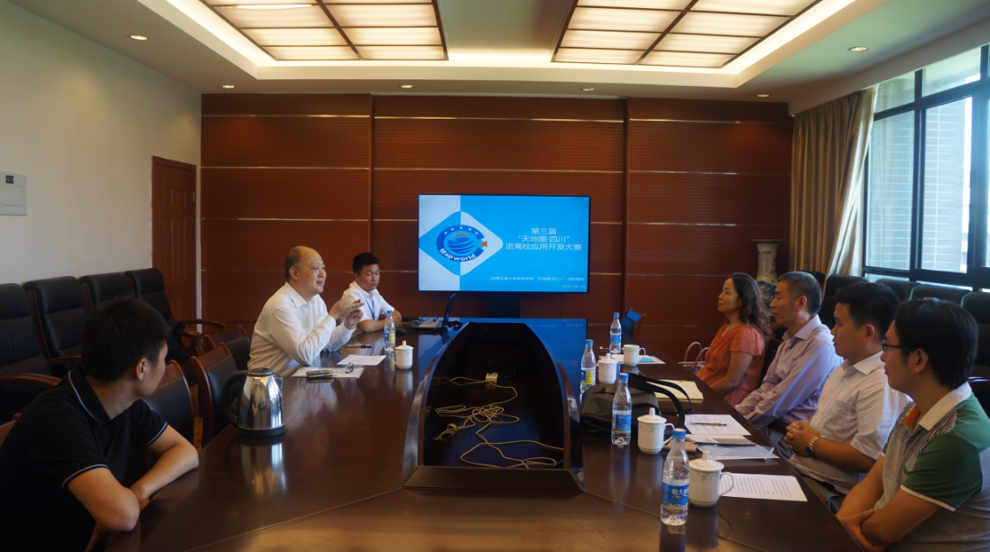 第三届“天地图•四川”进高校应用开发大赛技术培训会于2016年9月10日在西南交通大学犀浦校区“天地图•四川+ 创新基地”举行,出席本次培训会的专家有四川省测绘地理信息局基础地理信息中心党委书记李忠良、四川省测绘地理信息局基础地理信息中心工程中心主任曹振宇、四川省测绘地理信息学会地图制图与GIS专业委员会秘书刘学玉、四川省基础地理信息中心平台事业部部长任春雷和西南交通大学地球科学与环境工程学院副院长齐华。参加此次培训的学员,有来自省内十一所高校近80名师生。