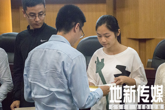 之后,受助学生代表罗枫做了发言,他向中海达集团和学校,老师致以了他最真挚的谢意与感恩之情,也对中海达集团回馈社会,资助学生的行为表示钦佩,最后他向大家分享了自己学习上的经验以及对大家的建议。