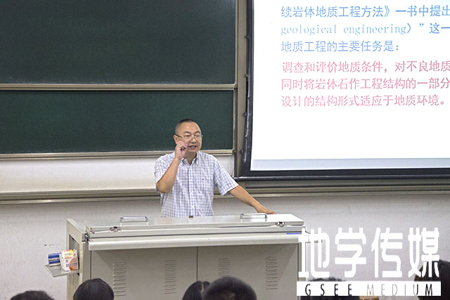 在现场,巫锡勇教授还就学生普遍提出的对专业前景的困惑进行了答疑。他结合沪蓉西高速公路、川藏线铁路建设等多个已竣工或正在施工的大型工程建设项目,谈到我国目前正处于大型建设的高峰时期,跨越江海湖泊和穿越高山峡谷的大型交通通道以及大型水电工程、川气东输的建设将会是一个长期而艰巨的任务,地质工程专业及相应的上述研究领域将会具有十分可观的发展前景。同时,他还结合我国近年来发生的多起地质灾害,强调地质工程在日常生活中的作用及其重要性。最后,巫教授向新生生提出了几点求学建议:一、培养地质兴趣,兴趣对于今后的专业学习有很重要的作用;二、性格决定命运;三、切忌人云亦云。