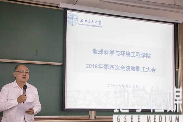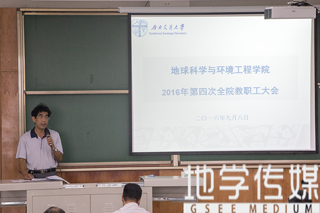 在X4357教室召开2016年第四次全院教职工大会,大会由副院长齐华教授主持。