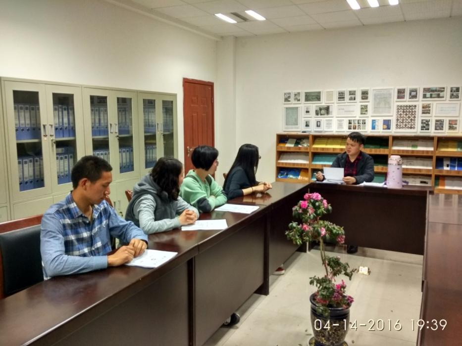 2016年4月14日晚上7点,测绘系2016年本科毕业论文中期检查专家面谈工作在X4546、X4433、X4431举行。检查工作邀请到测绘、地信及遥感三个研究方向的教师袁林果、周乐韬、黄泽纯及慎利进行现场指导工作。专家面谈采取一对一或一对多的灵活形式,专家从论文进展、外文翻译、指导纪要、程序编写等方面对每位学生进行提问,较好地掌握了学生论文的进展情况,对进展缓慢的学生论文,提出了限期整改的要求。此次专家面谈工作较好地保证了我系本科毕业论文的质量。