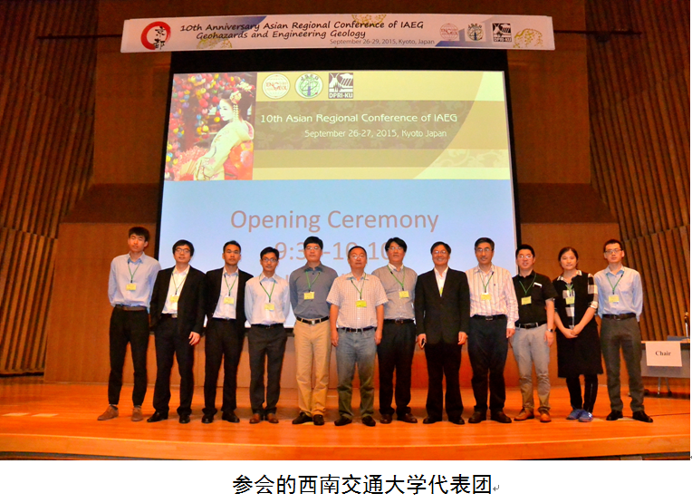 第十届亚洲区域工程地质大会于2015.9.26-29日在日本京都大学召开。亚洲区域工程地质大会为大型国际学术会议,由国际工程地质协会每两年主办一次。来自12个国家和地区的230余名学者出席了此次大会,其中中国参会人员76名(含中国台湾的11人)。会议主题包括:滑坡、泥石流与岩体崩塌;新构造运动与地质灾害;工程建设与维护中的工程地质问题;工程地质新技术。
