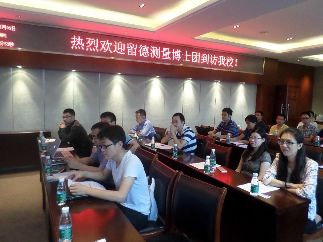 测绘学科的历史沿革、学科发展、人才培养、科学研究及国际合作等方面的概况和特色,就交流团特别感兴趣的人才引进、青年教师培养等问题进行了详细地讲解,并热诚邀请留德测量博士交流团成员能落户西南交大,为交大的测绘学科发展做出贡献。测绘工程系主任范东明教授介绍了测绘工程系的基本情况,并一一回答了交流团成员关于科研平台、学科发展、人才引进待遇等方面的提问。
