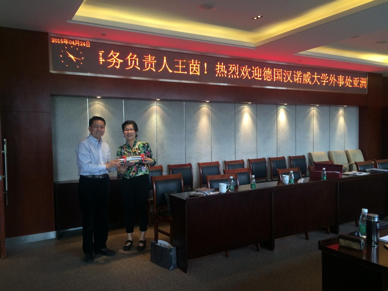 表示热烈欢迎。双方就选派交换生、双学位以及两校教师间的交流与科研合作等详细交换了意见。国际处许军华老师表达了学校对此次与德国汉诺威大学进行校际间合作的期待,并介绍了学校目前开设的全英文课程以及学校对交换生等的相关支持政策,希望通过此次会面,尽快推动两校间全方位的合作。