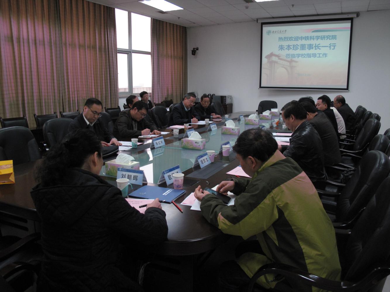 3月16日下午,中铁科学研究院董事长朱本珍一行来校洽谈校院合作事宜。