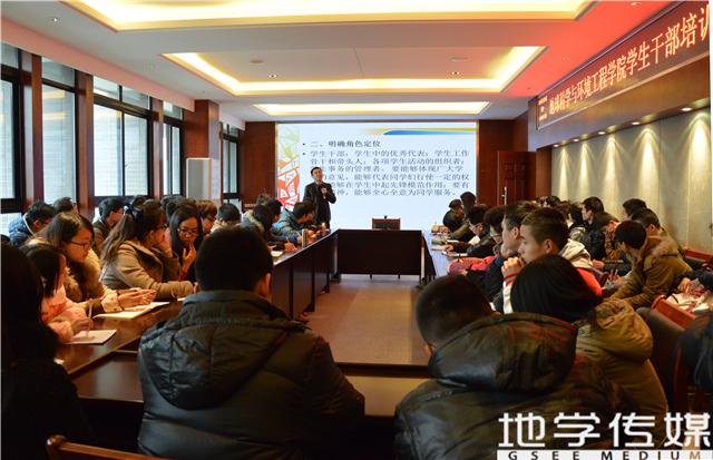 4520会议室召开了学生干部培训会暨工作部署会,院党委副书记傅尤刚老师做了“负责任 有担当 讲奉献 践行‘五有’交大人”的专题讲座,并对近期的学生工作要求进行了安排布置,学院全体辅导员、本科生班长、团支书、党支部书记参加了会议。