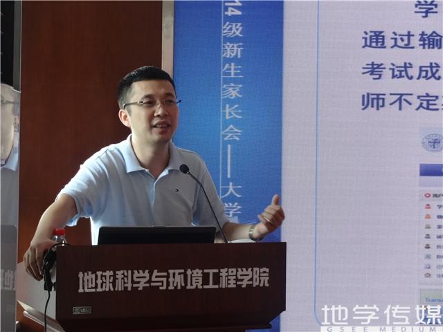 各个专业新生的家长与会,由地球与环境工程学院党委副书记傅尤刚老师主讲。
