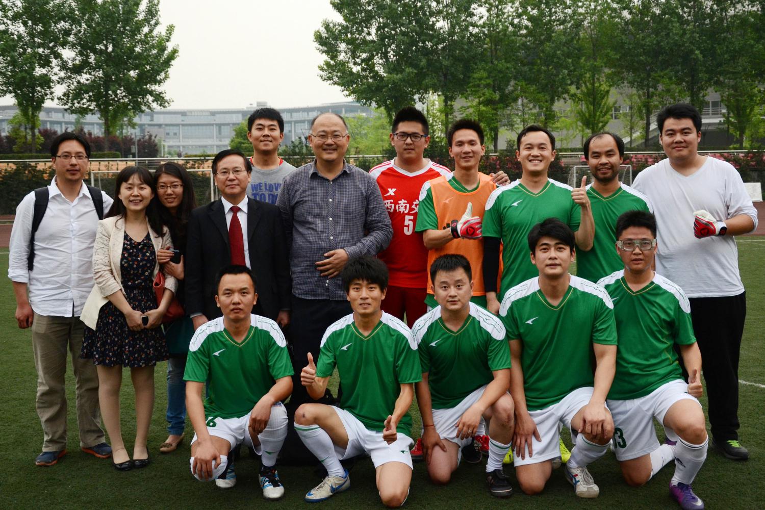 教职工足球队再次力克强敌,创造历史最佳战绩,赢得淘汰赛,昂首挺进四强。