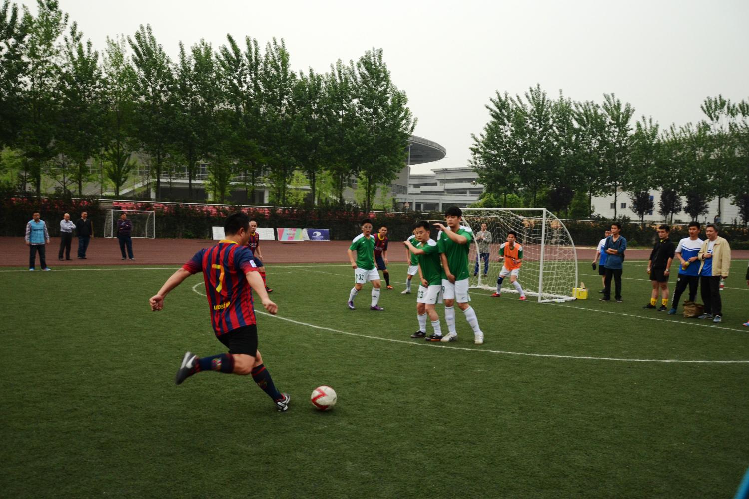 教职工足球队强大的防御阵型,始终无法突破我方大门。
