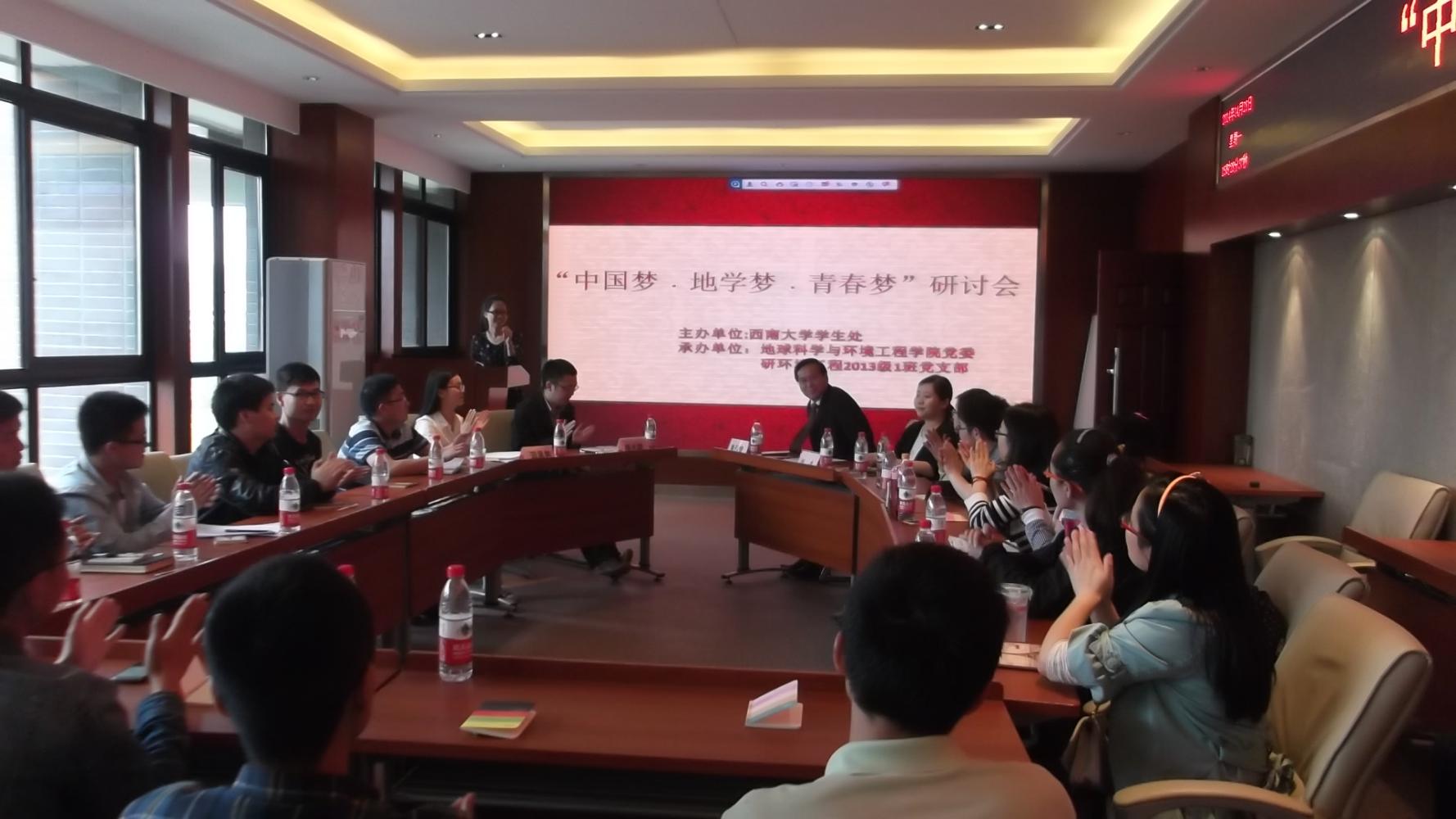 2014年4月28日,下午3:20,“中国梦·地学梦·青春梦”研讨会在犀浦校区4520第一会议室举行。本次研讨会由西南交通大学党委组织部、学生处主办,地球科学与环境工程学院党委研环境工程2013级1班党支部承办。出席本次活动的嘉宾有韩国漫画