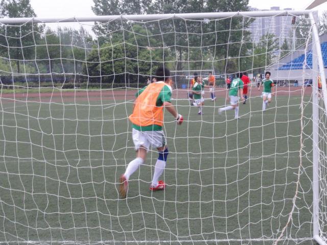 代表队对阵的机关大队无疑是一支实力极强的队伍,有着高大强壮的后卫和灵活的15号进攻核心。在上半场比赛中,双方攻守相当,气势上也是五五开。下半场我方球员加强了攻势,三人组成三角阵型,将球传带压近对方球门。7号球员抽射,北门柱弹出,对方15号得球,由于我方球员均在前场,后防空虚,15乘机单带入禁区,破门,得到一分。我方虽然因过于激进的进攻而失掉一球,但是球员们都没有气馁,重整旗鼓后继续拼搏。不久,我方19号在中场得到长传,19号以一记地滚球传给我方7号,7号球员带球突破,又是一记抽射,把球送进了对方球门。战平之后,我方恢复了信心,教练叫暂停,整顿情绪提高士气。再度上场,场上似乎又回到了上半场的僵持局面。不过令人意想不到的是,在赛程接近尾声的时候,对方形成一波有力的进攻,将球打入我方禁区。我方球员忙于解围,却失误将球打入了球门。之后对方严防死守,破坏进攻。但在这样的情况下,我方23号球员一记中场远射,直打横梁,反弹下来压在了白线外。虽未进球,亦是给出漫蛙漫画