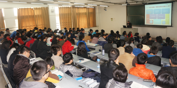 在报告中,谭主任首先介绍了四川省测绘地理信息局以及四川省测绘地理信息局基础地理信息中心的基本情况,从国家、省级重大测绘工程使我省测绘地理信息成果不断丰富,我省测绘地理信息成果基本情况,信息化测绘体系下测绘保障与服务模式的重大转变等几个方面做了阐述,充分论述了信息化测绘体系下测绘保障与服务的主要任务和目标,着重介绍了基于天地图•四川的地理信息服务以及我省测绘应急保障工作。谭主任最后表示地理信息服务深化普及,一个地理信息的世界正在形成,智慧地球、物联网、大数据、云计算等新思想、新方法、新技术不断涌现,极大地促进了地理信息科学的发展,也对GIS学科的发展提出了新的挑战。他勉励同学们抓住机遇,在学习理论知识的同时要特别注意行业的发展和科技进步,争取学有所用,要做到理论与实际相结合,抓住每一次机会锻炼自己,从而不断提高自己的能力。