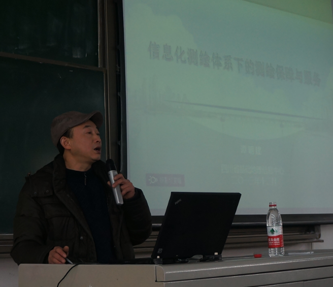 12月16日下午2点,在犀浦校区X1212教室,四川省测绘地理信息局基础地理信息中心主任、四川省测绘学会常务理事,四川省测绘学会地图制图与GIS专业委员会主任委员、国家测绘局测绘标准化工作委员会委员,教授级高级工程师谭明建同志应漫蛙漫画