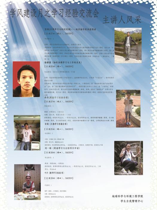 根据地学学风建设月整体安排,现将学习经验交流会具体时间、地点安排予以公示。